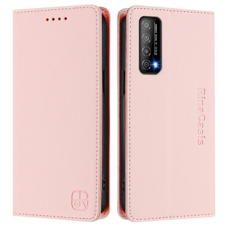 Funda de Cuero con Doble Pliegue y Succión Magnética para Huawei Enjoy 20 Se Huawei Y7A Rc01 (Rosa)