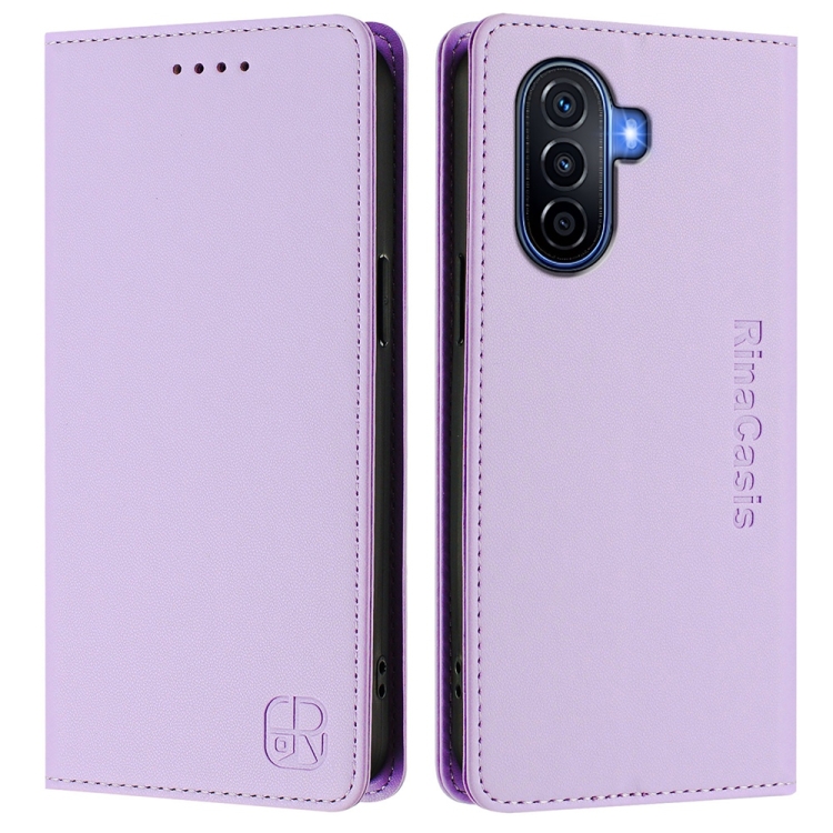 Funda de Cuero doble pliegue con Succión Magnética para Huawei Enjoy 50 Nova Y70 Plus Rc01 (Morado Claro)