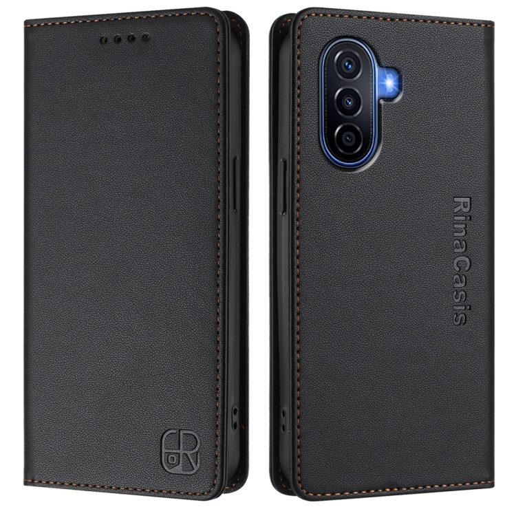 Funda de Cuero con Doble Pliegue y Succión Magnética para Huawei Enjoy 50/Nova Y70 Plus Rc01 (Negra)