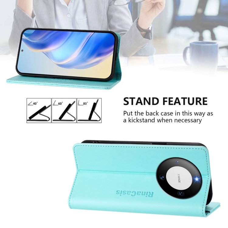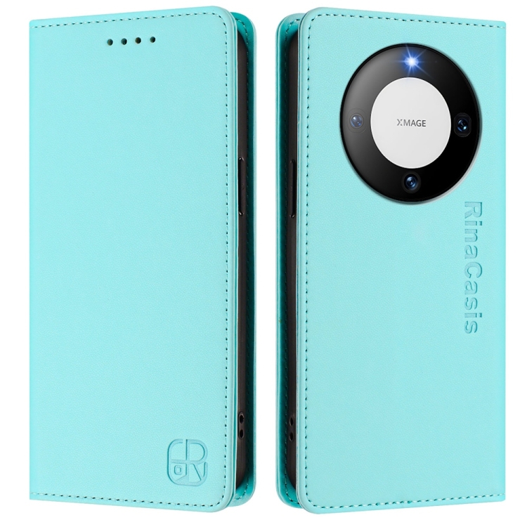Funda de Cuero Huawei Mate 60 Pro y Mate 60 Pro+ Rc01 con Doble Pliegue y Succión Magnética (Verde Menta)