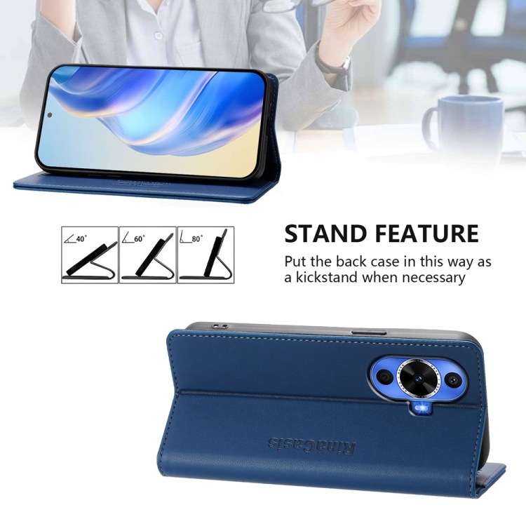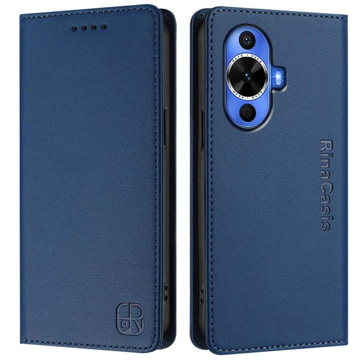 Funda de Cuero Huawei Nova 12S Global Rc01 con Doble Pliegue y Succión Magnética (Azul Oscuro)