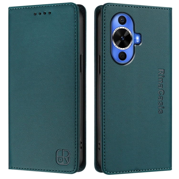 Funda de Cuero con Doble Pliegue y Succión Magnética para Huawei Nova 12S Global Rc01 (Verde Oscuro)