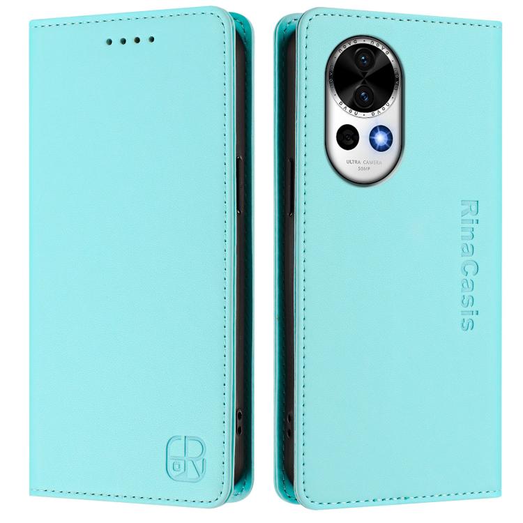 Funda de Cuero Huawei Nova 13 Nova 12 Rc01 Doble Pliegue Succión Magnética (Verde Menta)