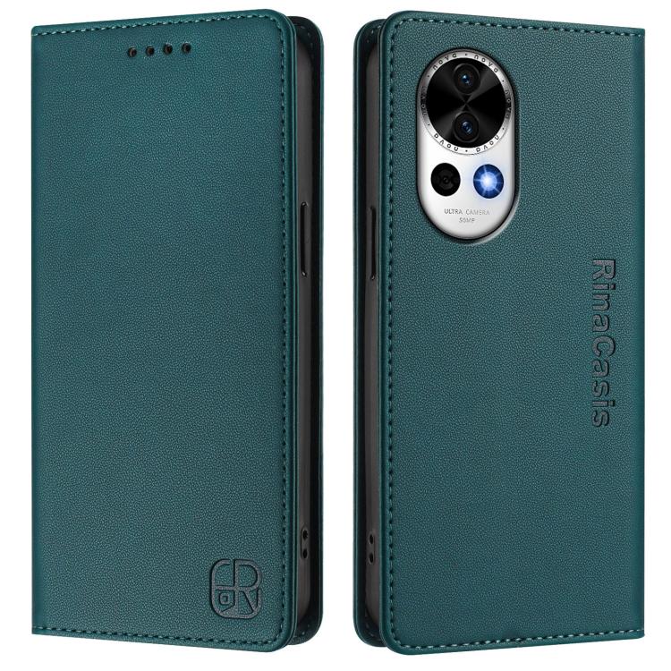 Funda de Cuero con Doble Pliegue y Succión Magnética para Huawei Nova 13/Nova 12 Rc01 (Verde Oscuro)