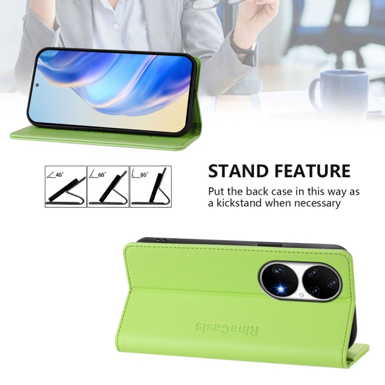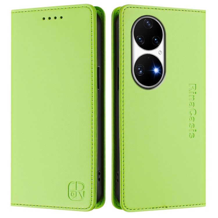 Funda de Cuero con Doble Pliegue y Succión Magnética para Huawei P50 Pro Rc01 (Verde Hierba)