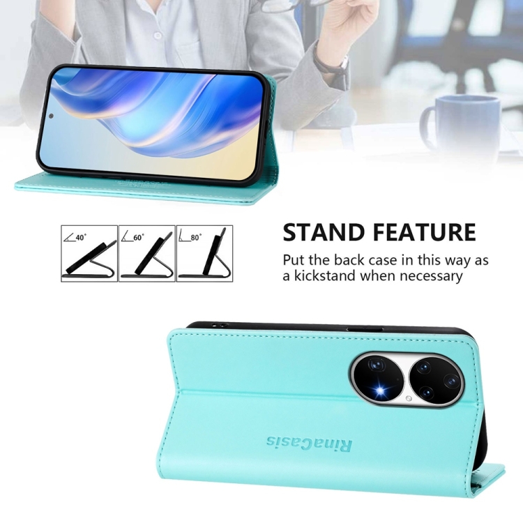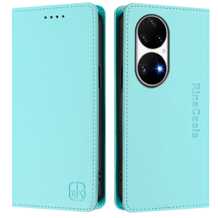 Funda de Cuero Huawei P50 Pro Rc01 con Doble Pliegue y Succión Magnética (Verde Menta)