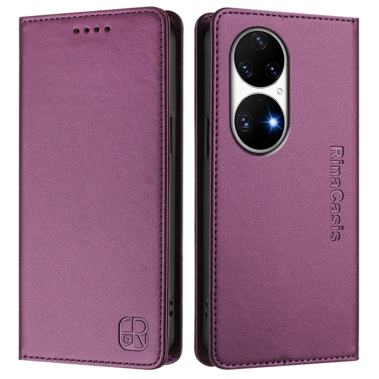 Funda de Cuero con Doble Pliegue y Succión Magnética para Huawei P50 Pro Rc01 (Violeta)