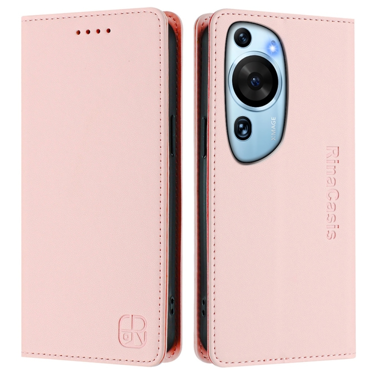 Funda de Cuero con Doble Pliegue y Succión Magnética para Huawei P60 Art Rc01 (Rosa)