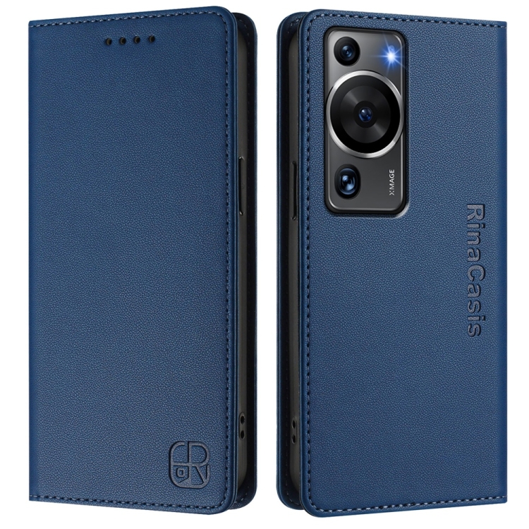 Funda de Cuero con Doble Pliegue y Succión Magnética para Huawei P60/P60 Pro Rc01 (Azul Oscuro)