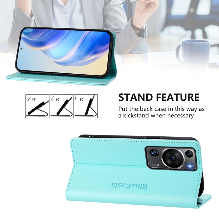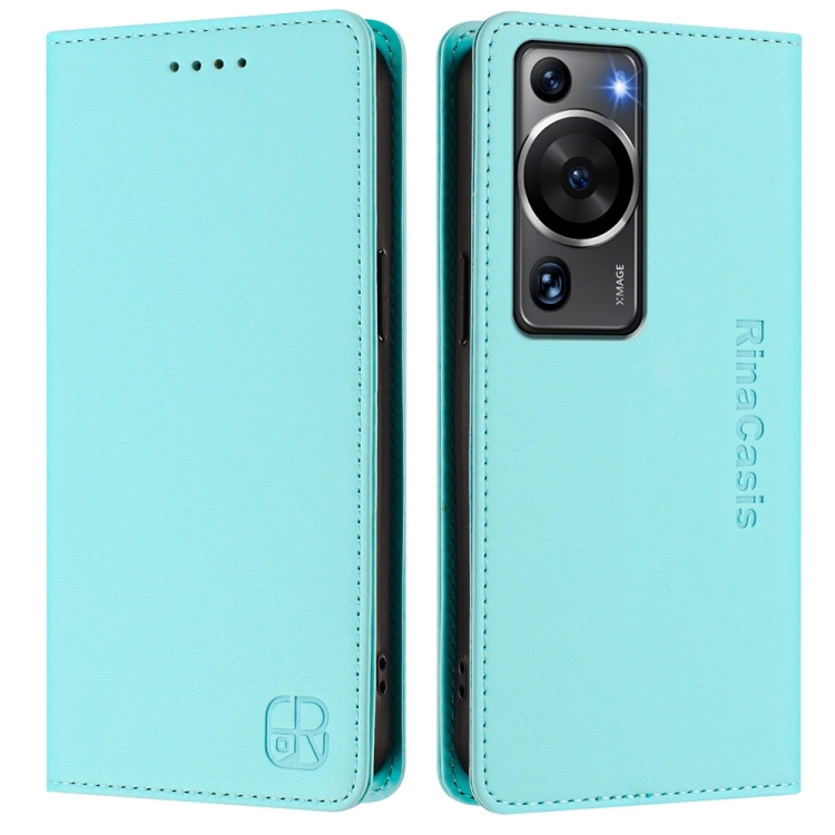 Funda de Cuero Huawei P60/P60 Pro Rc01 con Doble Pliegue y Succión Magnética (Verde Menta)