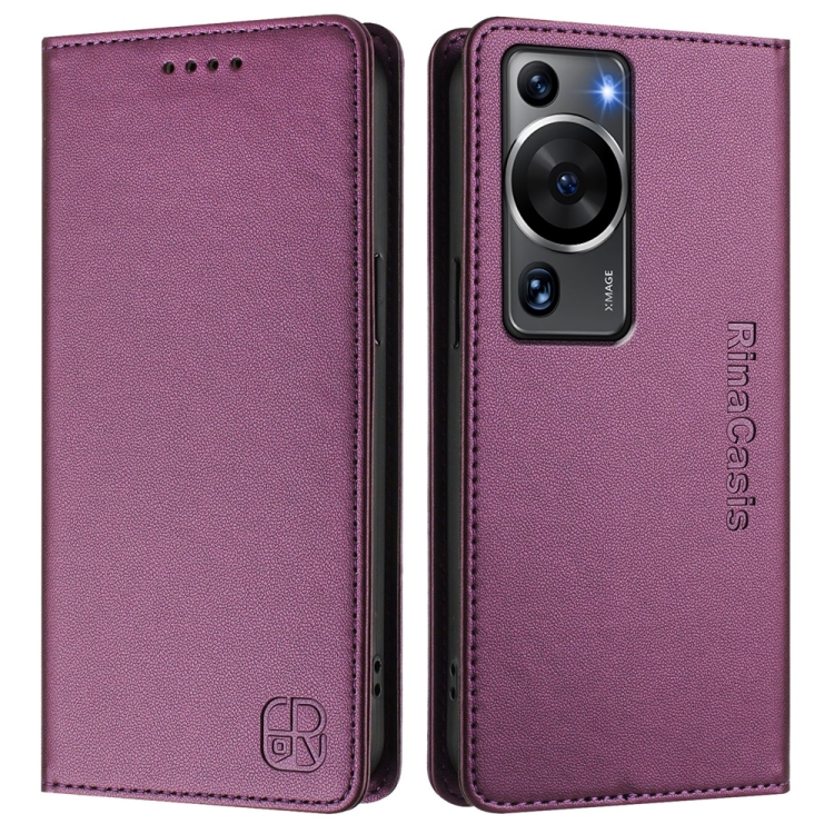 Funda de Cuero con Doble Pliegue y Succión Magnética para Huawei P60/P60 Pro Rc01 (Violeta)