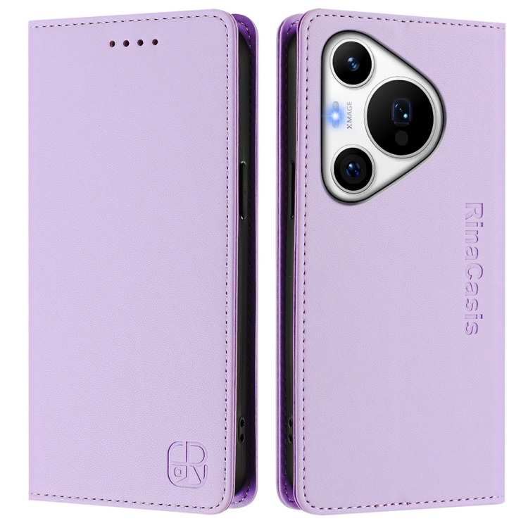 Funda de Cuero Huawei Pura 70 Pro/Pura 70 Pro+ Rc01 Doble Pliegue y Succión Magnética (Morado Claro)