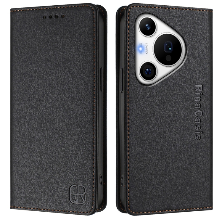 Funda de Cuero Huawei Pura 70 Pro/Pura 70 Pro+ Rc01 con Doble Pliegue y Succión Magnética (Negra)
