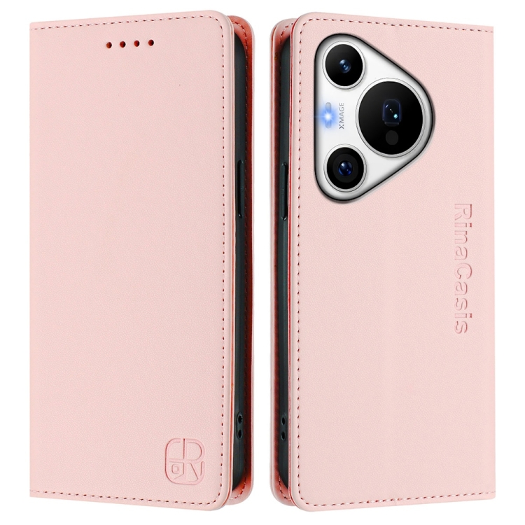 Funda de Cuero Huawei Pura 70 Pro/Pura 70 Pro+ Rc01 con Doble Pliegue y Succión Magnética (Rosa)