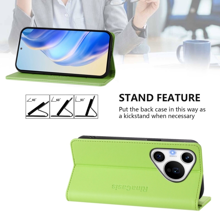 Funda de Cuero Huawei Pura 70 Pro y Pura 70 Pro+ Rc01 con Doble Pliegue y Succión Magnética (Verde Hierba)