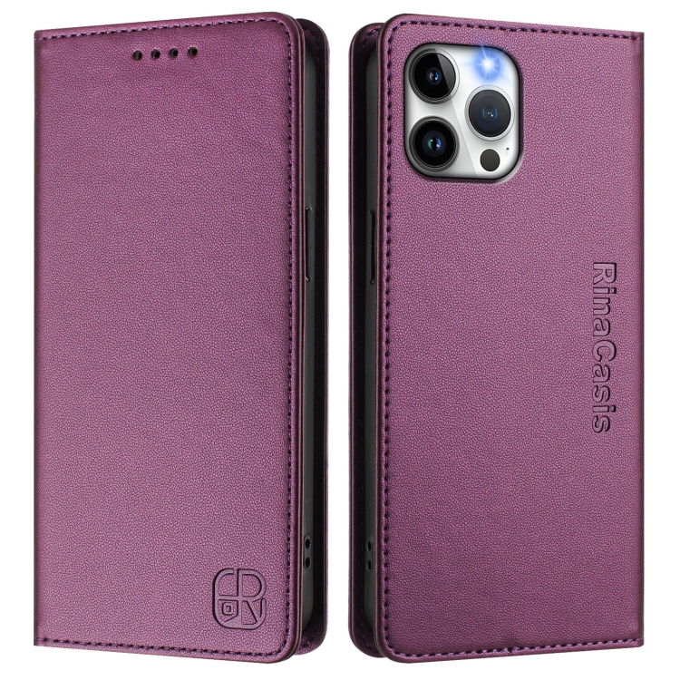Funda de Cuero Rc01 para iPhone 12 Pro Max con Doble Pliegue y Succión Magnética (Violeta)