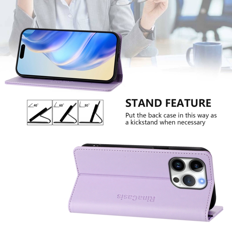Funda de Cuero Rc01 para iPhone 16 Pro con Doble Pliegue y Succión Magnética (Morado Claro)
