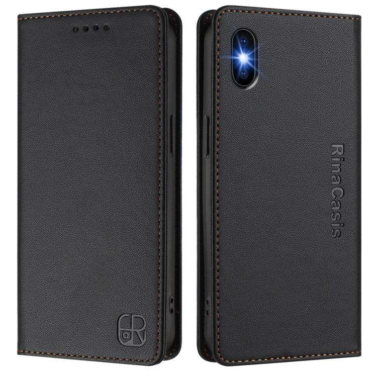 Funda de Cuero Rc01 para iPhone X/Xs con Doble Pliegue y Succión Magnética (Negra)