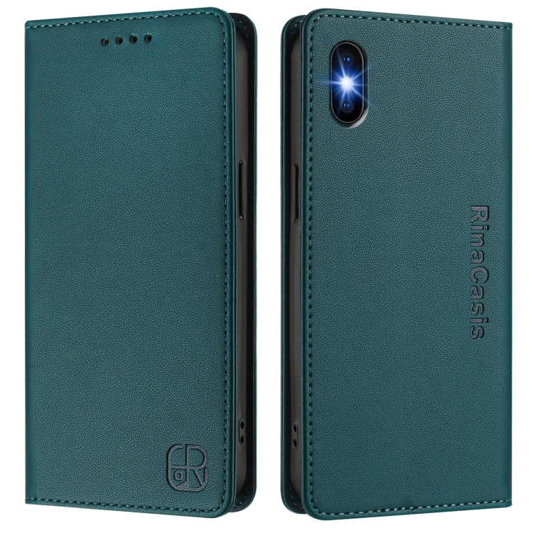 Funda de Cuero Rc01 para iPhone X/Xs con Doble Pliegue y Succión Magnética (Verde Oscuro)