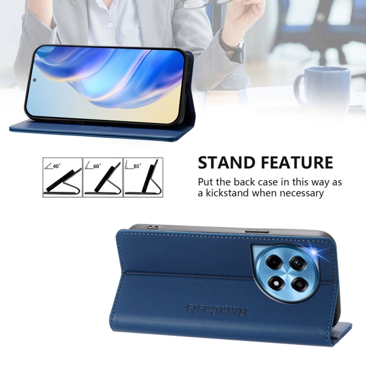 Funda de Cuero para OnePlus 12 Global Rc01 con Doble Pliegue y Succión Magnética (Azul Oscuro)