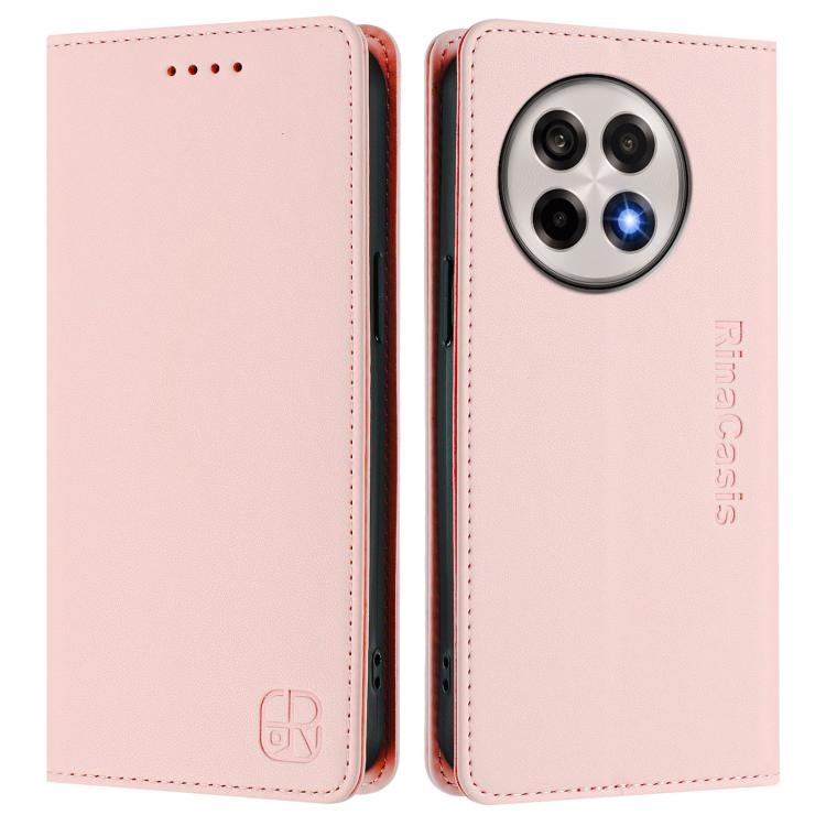 Funda de Cuero con Doble Pliegue y Succión Magnética para OnePlus 13R Ace 5 Ace 5 Pro Rc01 (Rosa)