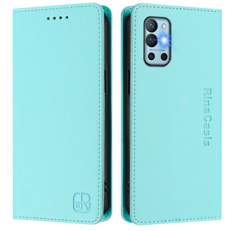 Funda de Cuero con Doble Pliegue y Succión Magnética para OnePlus 9R y 8T Rc01 (Verde Menta)