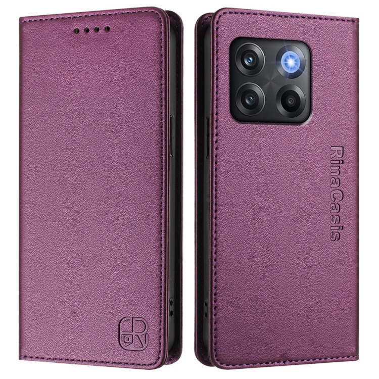 Funda de Cuero con Doble Pliegue y Succión Magnética para OnePlus Ace Pro y 10T Global Rc01 (Violeta)