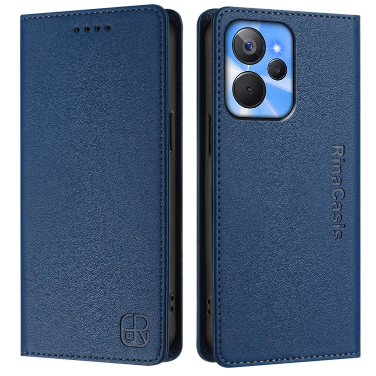Funda de Cuero con Doble Pliegue y Succión Magnética para Realme 10T 5G/10S 5G/9I 5G Indian Rc01 (Azul Oscuro)