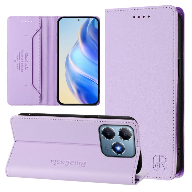Funda de Cuero con Doble Pliegue y Succión Magnética para Realme C63/C61 4G Global Rc01 (Morado Claro)