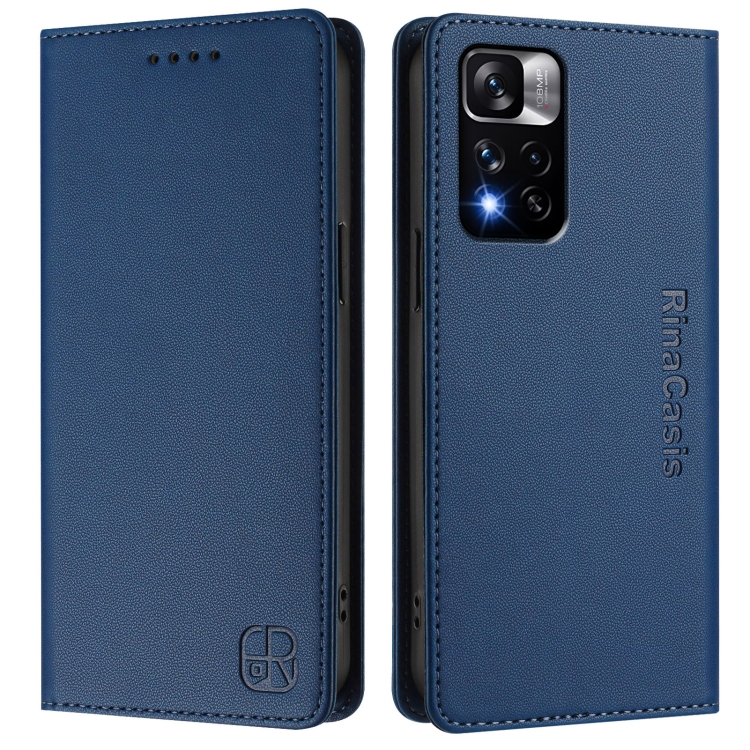 Funda de Cuero con Doble Pliegue y Succión Magnética para Redmi Note 11 Pro+ 5G, Modelo Europeo Rc01 (Azul Oscuro)
