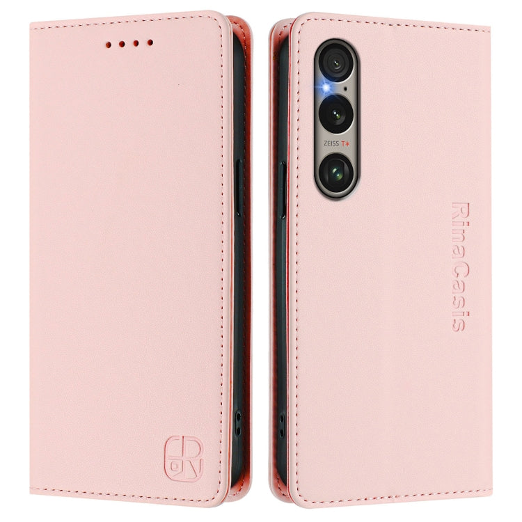 Funda de Cuero para Sony Xperia 1 Vi (2024) con Doble Pliegue y Succión Magnética (Rosa)