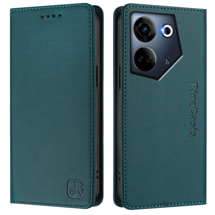 Funda de Cuero Rfid Doble Pliegue Succión Magnética para Tecno Camon 20 4G / 20 Pro 4G Rc01 (Verde Oscuro)