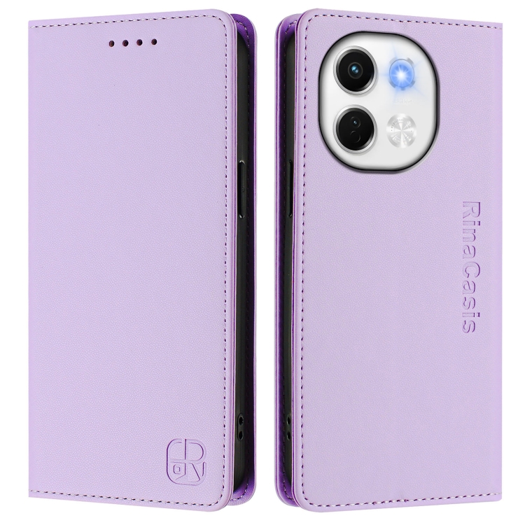 Funda de Cuero con Doble Pliegue y Cierre Magnético Rfid para Tecno Spark 30 5G y Pova 6 Neo 5G Rc01 (Morado Claro)