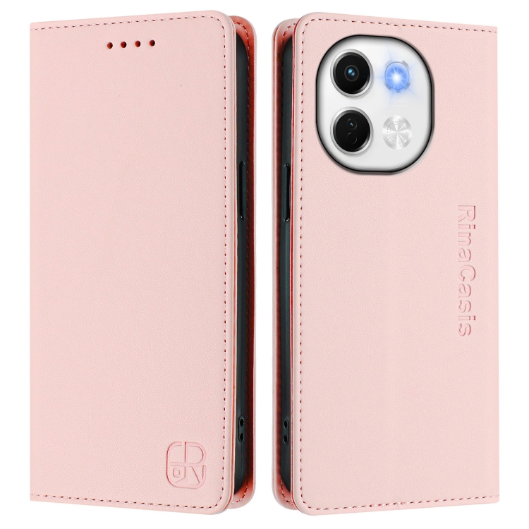 Funda de Cuero con Doble Pliegue y Succión Magnética Rfid para Tecno Spark 30 5G / Pova 6 Neo 5G Rc01 (Rosa)