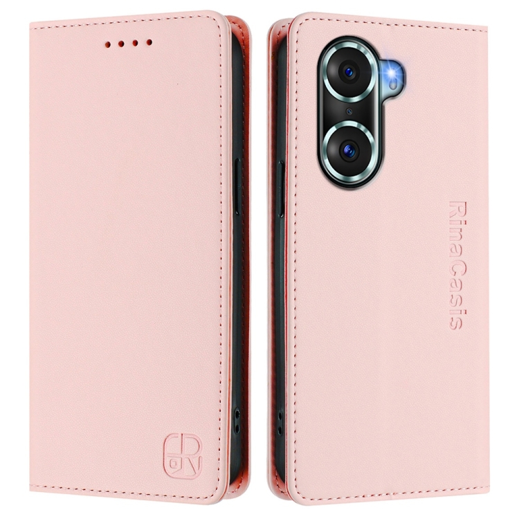 Funda de Cuero con Doble Pliegue y Succión Magnética RFID para Honor 60 Pro Rc01 (Rosa)