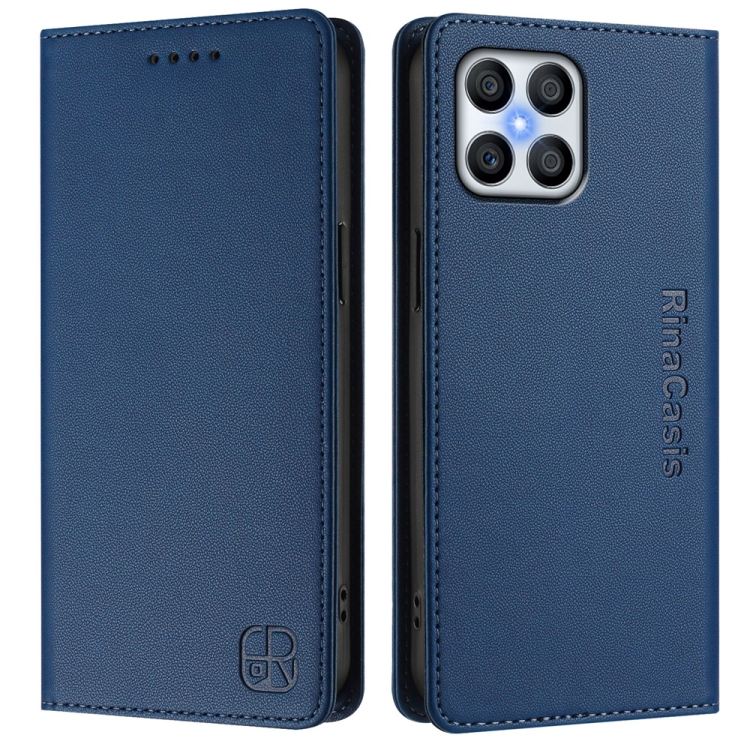 Funda de Cuero con Doble Pliegue y Succión Magnética Rfid para Honor X8 5G / X6 4G / X6S 4G Rc01 (Azul Oscuro)