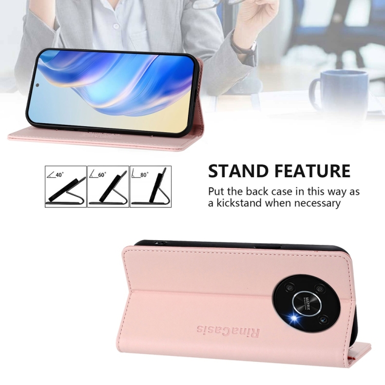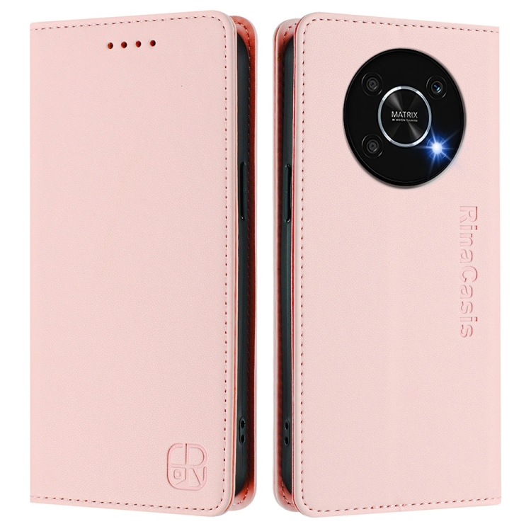 Funda de Cuero con Doble Pliegue y Succión Magnética RFID para Honor X9 4G 5G y X30 5G Rc01 (Rosa)