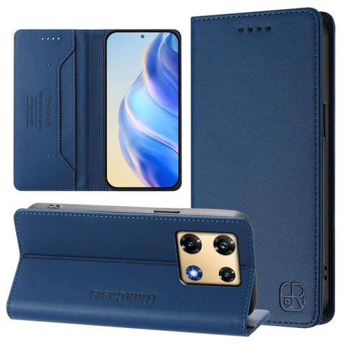 Funda de Cuero con Doble Pliegue y Succión Magnética para Infinix Note 30 Pro 4G Rc01 (Azul Oscuro)