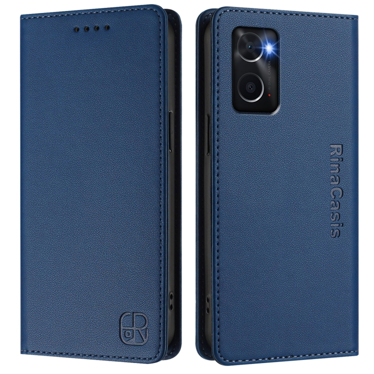 Funda de Cuero con Doble Pliegue y Succión Magnética Rfid para Oppo A36 4G / A76 4G / A96 4G / K10 4G Rc01 (Azul Oscuro)