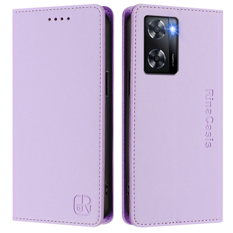 Funda de Cuero con Doble Pliegue y Cierre Magnético Rfid para Oppo A57 4G / A77 4G Rc01 (Morado Claro)