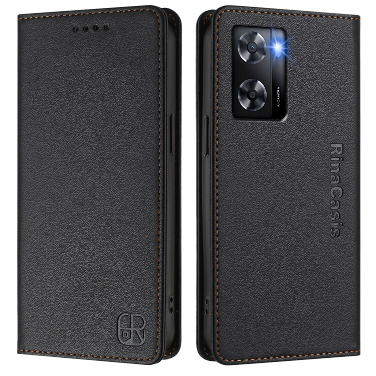 Funda de Cuero con Doble Pliegue y Cierre Magnético Rfid para Oppo A57 4G / A77 4G Rc01 (Negra)