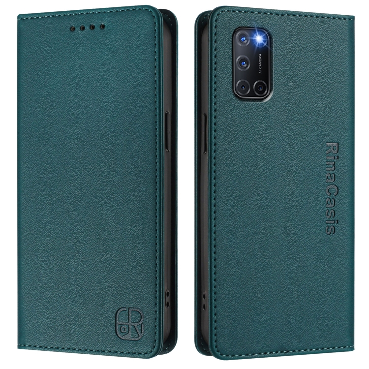 Funda de Cuero con Doble Pliegue y Succión Magnética Rfid para Oppo A72/A52/A92 4G Rc01 (Verde Oscuro)