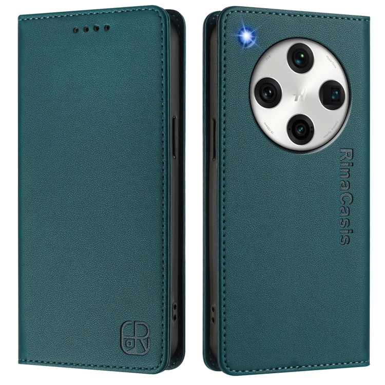 Funda de Cuero con Doble Pliegue y Succión Magnética Rfid para Oppo Find X8 Pro Rc01 (Verde Oscuro)
