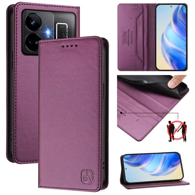 Funda de Cuero con Doble Pliegue y Succión Magnética para Teléfono Realme Gt3 5G / Gt Neo 5 240W Rc01 (Violeta)