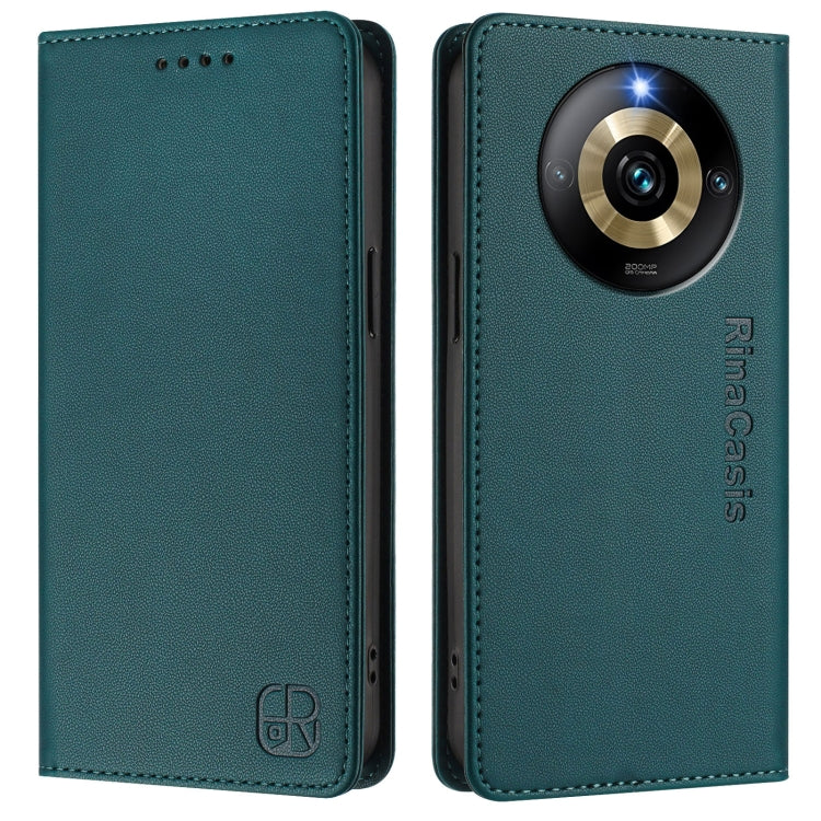 Funda de Cuero con Doble Pliegue y Succión Magnética para Teléfono Realme Narzo 60 Pro Rc01 (Verde Oscuro)