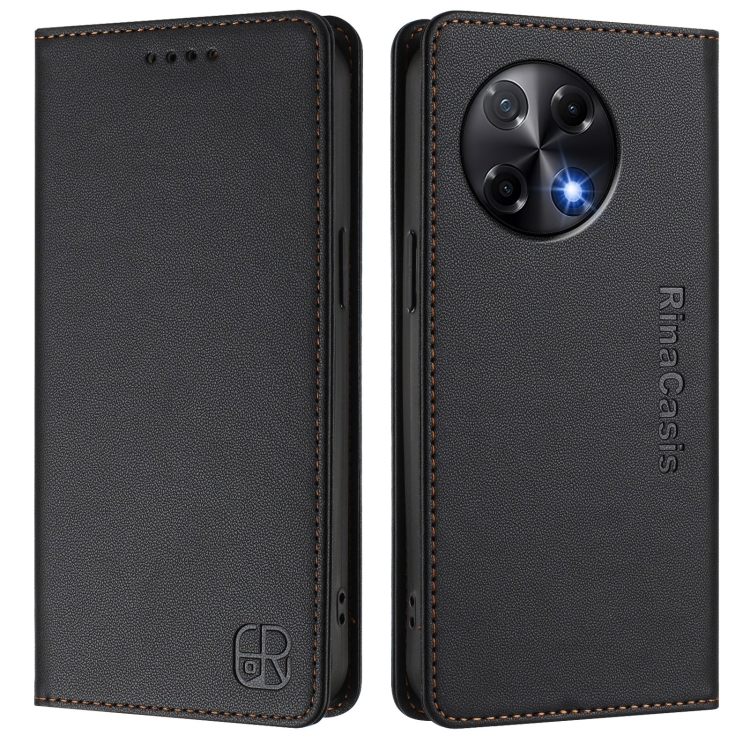 Funda de Cuero con Doble Pliegue y Cierre Magnético RFID para Tecno Camon 30S / 30S Pro 5G Rc01 (Negra)
