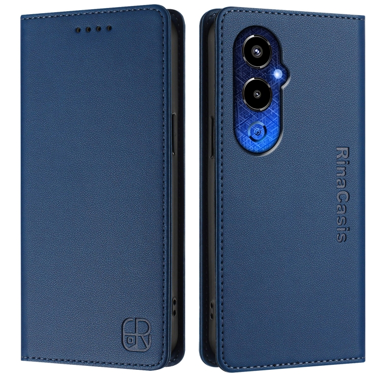 Funda de Cuero con Doble Pliegue y Succión Magnética Rfid para Tecno Pova 4 Pro 4G Rc01 (Azul Oscuro)