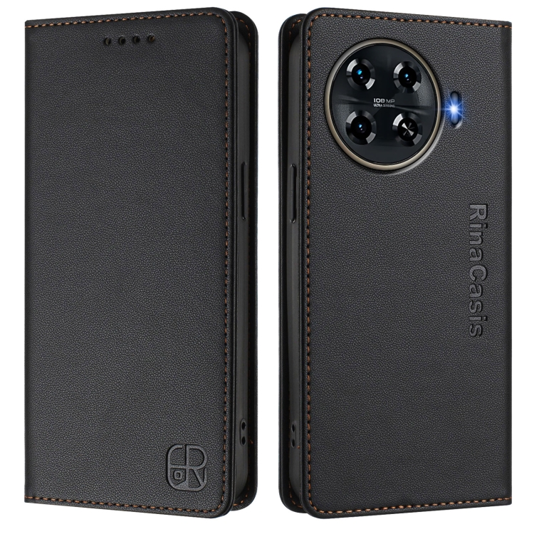 Funda de Cuero con Doble Pliegue y Succión Magnética Rfid para Tecno Spark 20 Pro+ 4G Rc01 (Negra)
