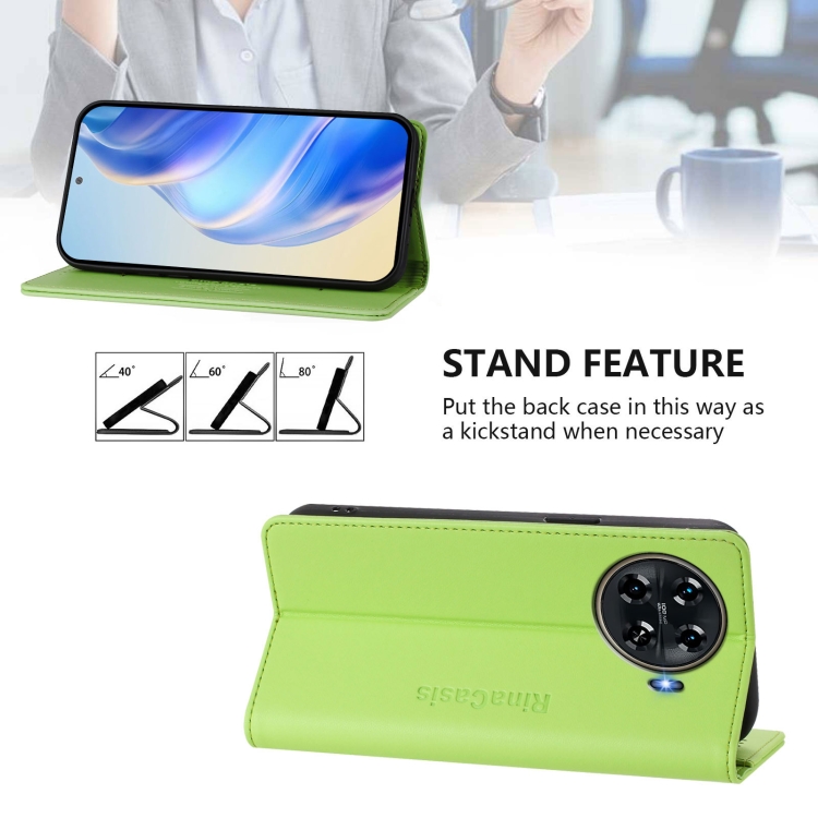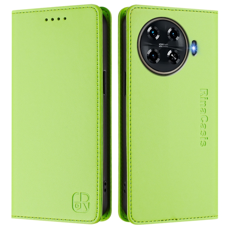 Funda de Cuero para Tecno Spark 20 Pro+ 4G Rc01 con Doble Pliegue y Succión Magnética Rfid (Verde Hierba)