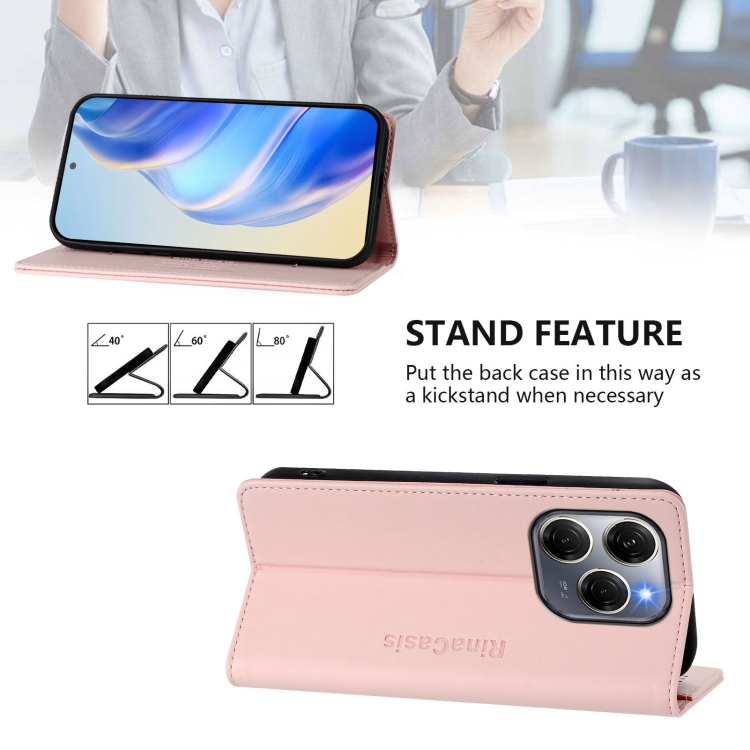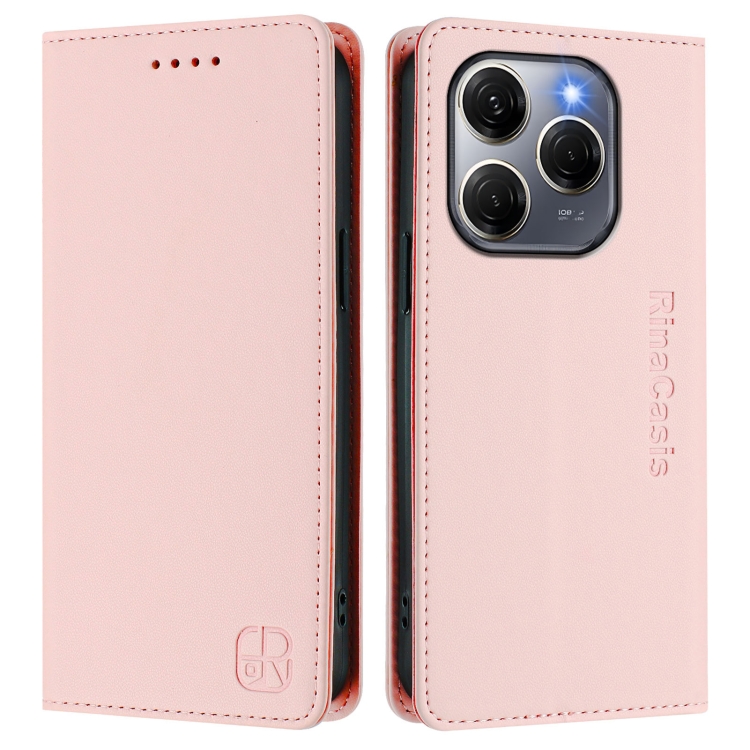 Funda de Cuero con Doble Pliegue y Succión Magnética RFID para Tecno Spark 20 Pro 5G Rc01 (Rosa)
